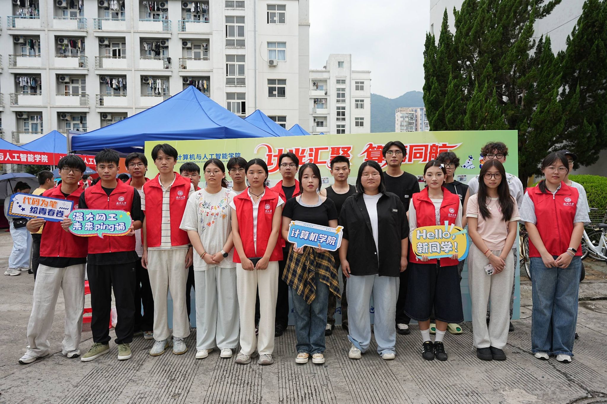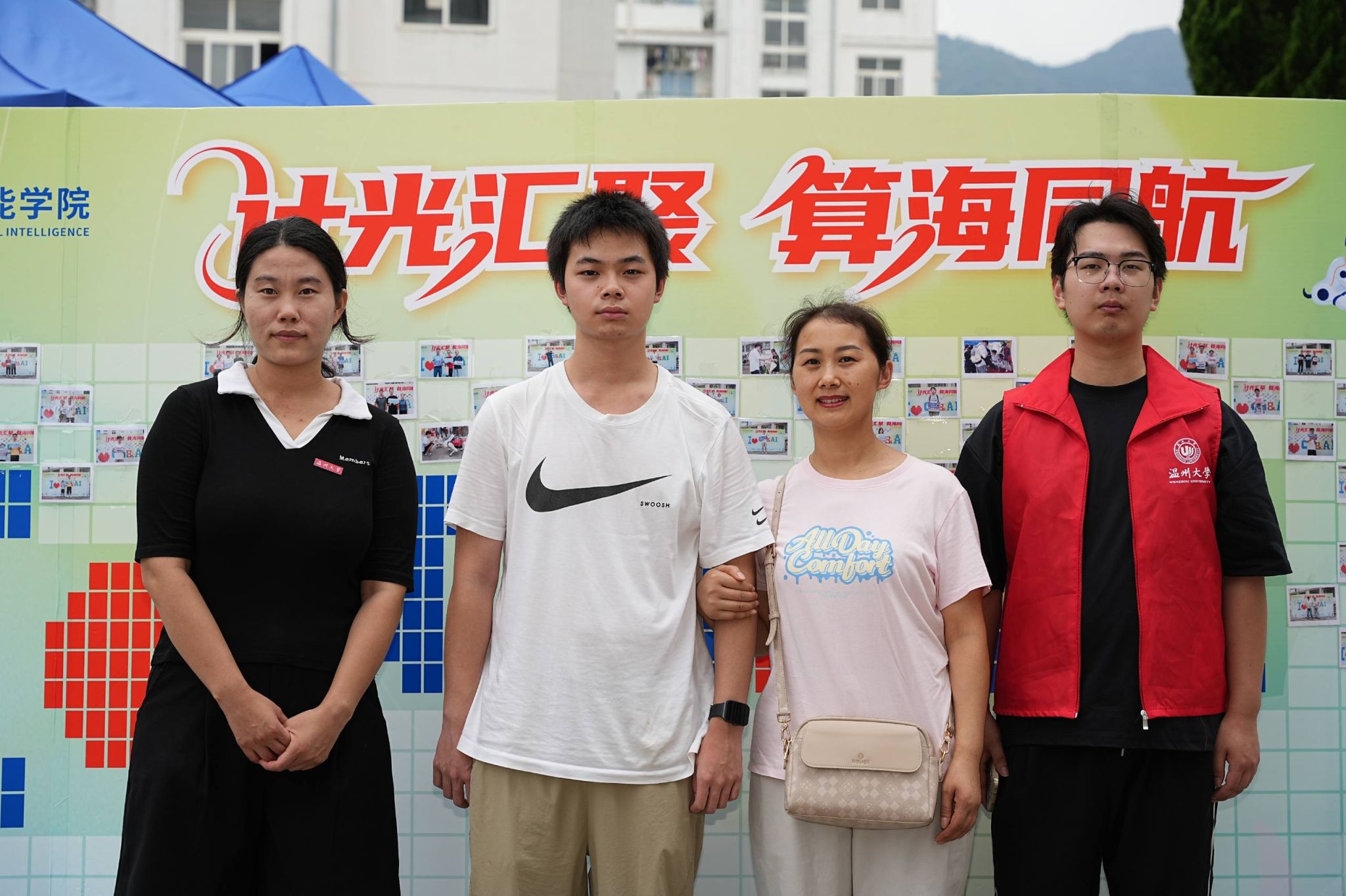 报到现场,25级新生在学生干部和志愿者的引导下,按照报到流程完成新生报到,领取学院精心准备的新生大礼包。一面由300余个相框组成的照片墙矗立在迎新点,期待着2025级新生将与计算机学院的第一张合影贴在每一个相框里,定格同学们与学院初遇的瞬间。