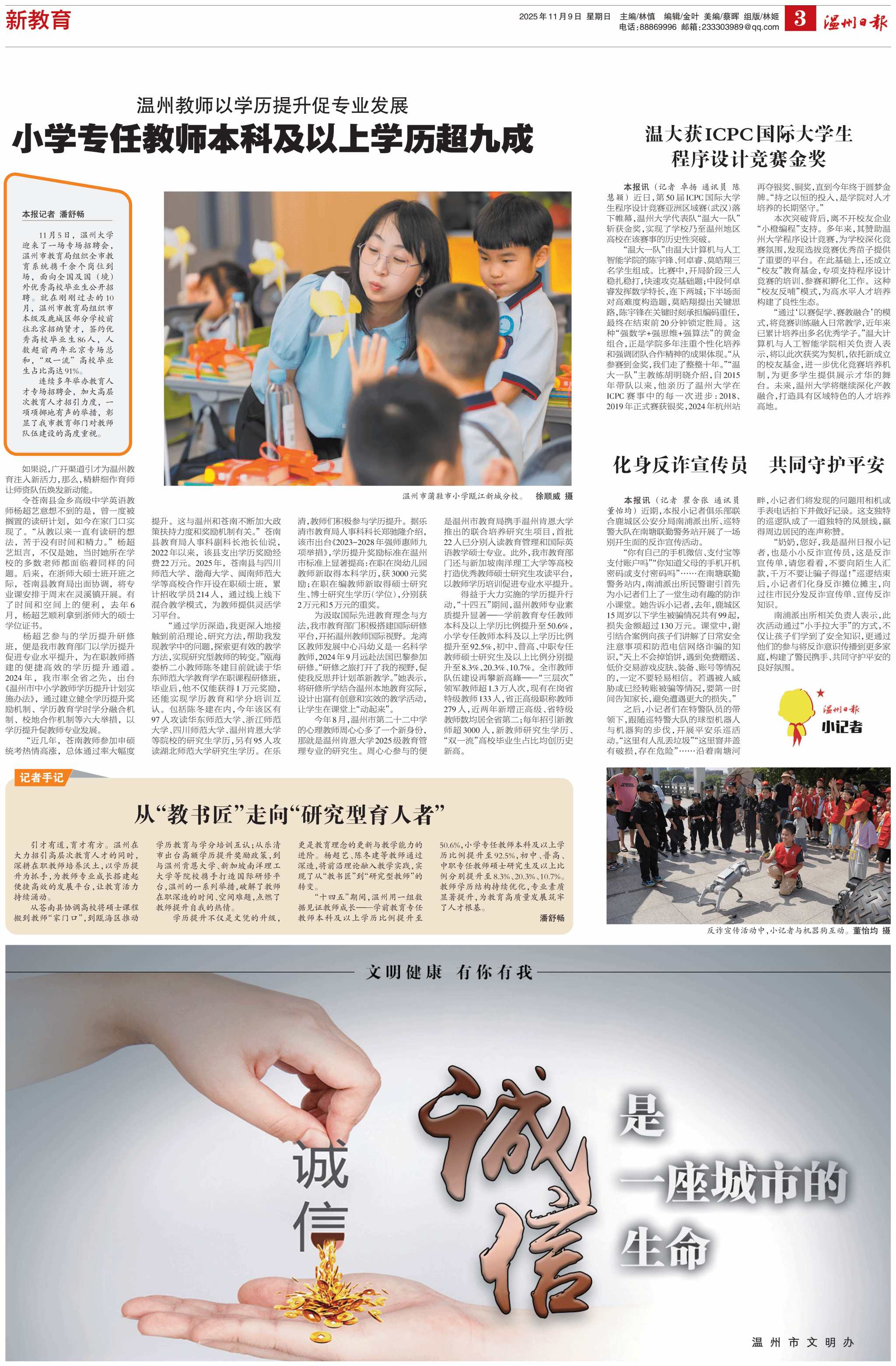 11月2日,第50届ICPC国际大学生程序设计竞赛亚洲区域赛(武汉)落下帷幕,温州大学代表队“温大一队”以总排名第38名的优异成绩斩获金奖,实现了学校乃至温州地区高校在该赛事的历史性突破。赛后,指导老师胡明晓激动地表示:“这是十年的坚持换来的金牌!”同时,校友企业“小橙编程”全程支持赛事筹备,并计划成立专项教育基金,为未来竞赛孵化提供持续动力。比赛现场:五年磨一剑的完美绽放本次竞赛于11月2日在武汉大学举行,吸引了亚洲东大陆区包括香港、...