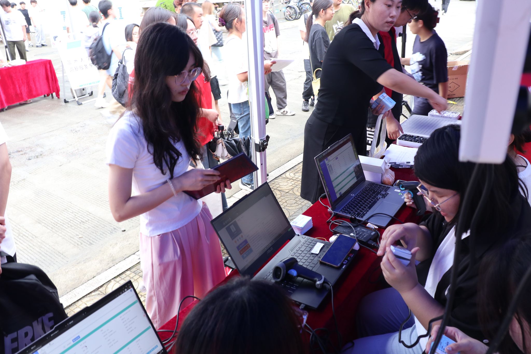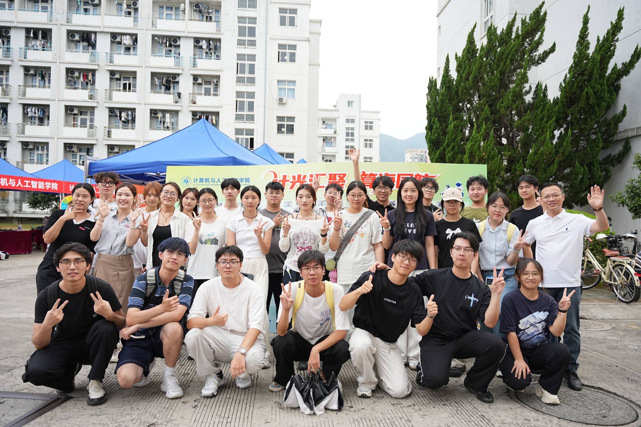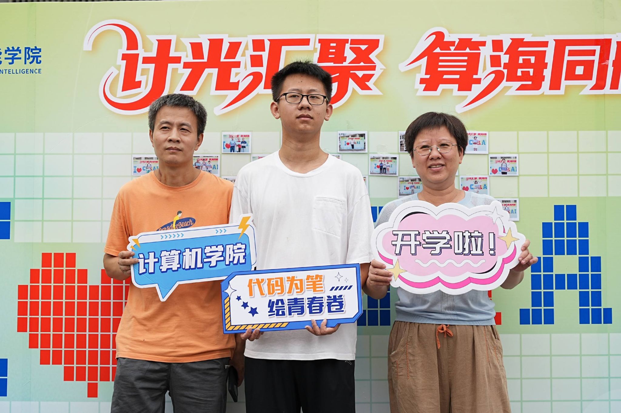 报到现场,25级新生在学生干部和志愿者的引导下,按照报到流程完成新生报到,领取学院精心准备的新生大礼包。一面由300余个相框组成的照片墙矗立在迎新点,期待着2025级新生将与计算机学院的第一张合影贴在每一个相框里,定格同学们与学院初遇的瞬间。