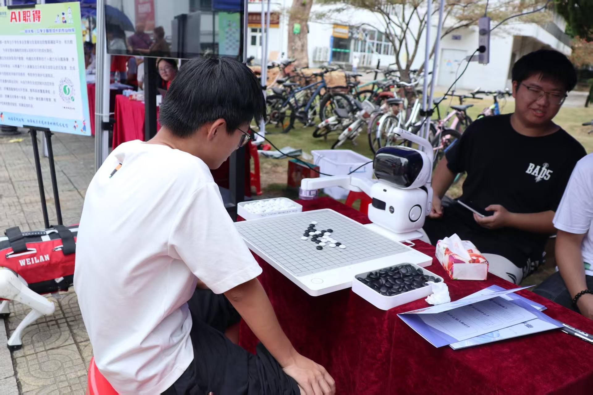 迎新活动现场,计算机学院为新生们营造了浓厚的科技氛围,学院自主研发的“AI职得”数字辅导员正式“履职”,以智能机器狗、“元萝卜”下棋机器人等科技产品为纽带,为新生开启了一场沉浸式的“科技初体验”。灵动的机器狗摇着机械手臂与新生握手互动,精准落子的“元萝卜”在棋盘上与新生展开智慧对弈,学院定制化打卡框里定格着一张张洋溢着好奇的青春笑脸,而AI辅导员则全程以温和的语音交互,将科技的趣味性与学院的专业特色悄然融入迎新环节。